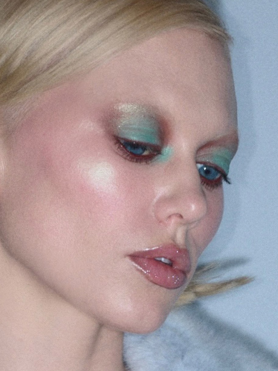 Start with the holiday-exclusive Bounce and Gleam Highlighter in InvestMint. “When I saw the mint highlighter, I was, like, I haven’t seen anything like that!” It’s fresh and flavourful. For eyes, the holiday-exclusive Eye Shadow in Mint Condition takes centre stage, and is contrasted by the richness of the mocha mousse tones aka Eye Shadow in Espresso. “I loved the idea of a weird eye shape that is flattering but is also a weird-cool look.”
